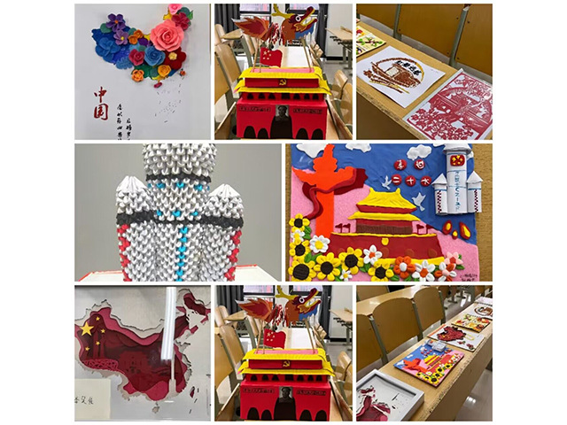 本次活动作品主要分为纸艺类、黏土类和木质类,作品外观静美,做工细腻,创意新颖,很好的诠释了活动的主题。其中纸艺类作品,同学们用普普通通的纸张剪出天安门前和谐美丽的景象,表达“愿以寸心寄华夏,且将岁月赠山河”的美好祝愿。黏土类作品中,同学们用超轻黏土绘制天安门、华表以及载人航天飞船和逆行者抗疫的画面,展现砥砺奋进的十年,神州大地实现了历史巨变的景象。木质作品中,用木质板件和灯串制成的星灯摆件表达了传承先辈精神的志向。此外,以一粒粒小小的种子组成的红船、CD涂鸦等新颖作品,都表达了同学们的爱国之情,报国之志。