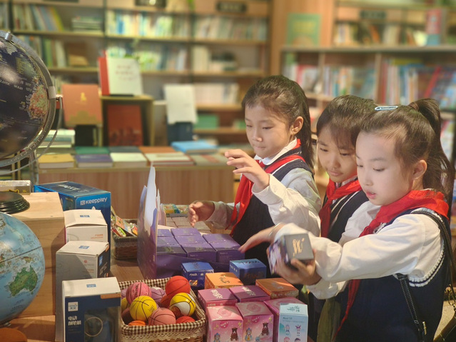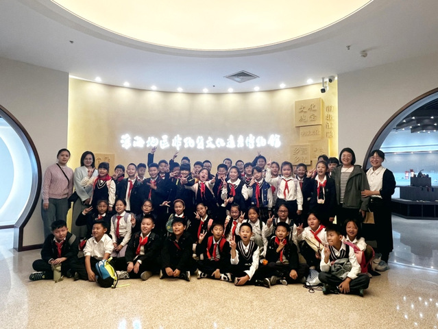 前期,为保障活动顺利进行,公司认真策划,制定了图书馆——淮海地区非遗博物馆——淮海地区革命文化博物馆——游览校园的研学路线。招募了30名志愿者并进行志愿者培训,确保活动有序开展。10月7日上午九时许,大巴车载着云苑路小学的员工们从南门入校,同学们被分为4组由志愿者们带领前往不同的参观点。在图书馆一楼大厅小朋友们一进门就被公司的校园沙盘吸引,全面了解了公司的格局分布,之后来到博库书城,在精美的文创产品前驻足观看。之后引导小朋友来到非遗博物馆,了解了淮海地区剪纸、石刻、年画、落子舞、跑竹马等非遗文化。从图书馆出来,同学们绕行龙湖欣赏校园风光,最后来到淮海地区革命文化博物馆看到了战争时期的手推车、农村磨盘等老物件,了解了以徐州为中心的淮海战役历史,聆听英雄事迹,传承红色血脉。