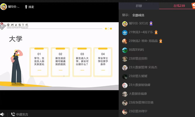 为构建良好的家校交流平台,帮助孩子尽快适应老员工活,共同关注员工们的学习成长,bevictor伟德于2023年8月30日在线上召开了员工家长会。本次会议由新生辅导员吴红岩主持,新生家长参与会议。