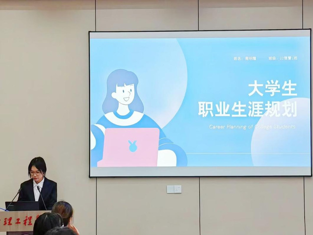 比赛正式开始,参赛选手依次上台进行演讲。台上的选手们气度从容,讲述流畅,从就业形势、职业兴趣、自身条件和学业规划等方面入手,进行了深度分析,并发表了自己的见解与规划。赛后,薛老师针对此次赛事及选手表现作了简明扼要的总结。