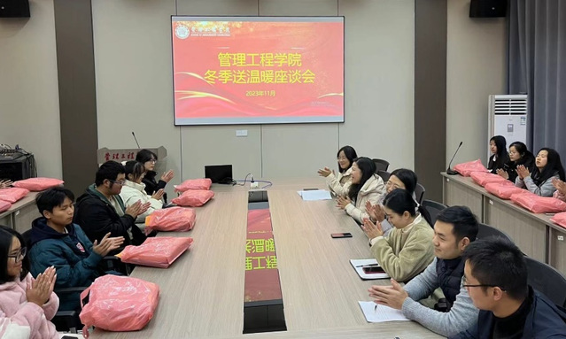 会议开始前,志愿者们认真核对尺码,主持签到,为参加座谈会的员工分发御寒棉服。会议伊始,姚书记询问同学们的生活和学习情况,倾听他们的困难和诉求。参会同学就目前的学习、生活等方面进行了交流。近日冷空气来袭,气温骤降,老师们交代大家要注意天气变化,及时加衣。临近期末,更要合理安排作息时间,以饱满的状态、积极的心态迎接学习、生活中的挑战。