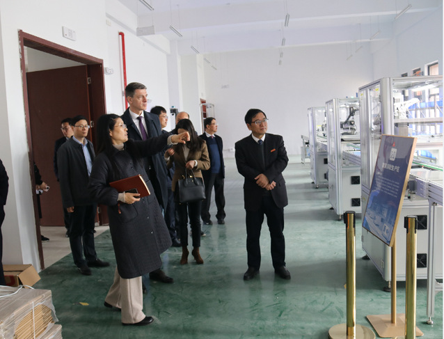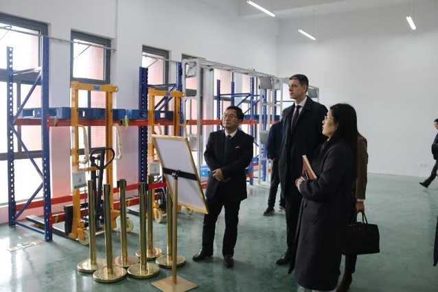 3月28日下午,匈牙利驻上海总领事博岚到bevictor伟德参观正在组装、调试中的淮海经济区智慧物流技术实训中心。马慧敏经理介绍了该实验室的实验设备、教学功能、科研情况以及今后能为社会所做的服务,总领事博岚也介绍了匈牙利杰尔市的物流中心地位及杰尔大学物流工程专业的概况,双方达成了在物流工程专业联合培养应用型人才的初步意向。