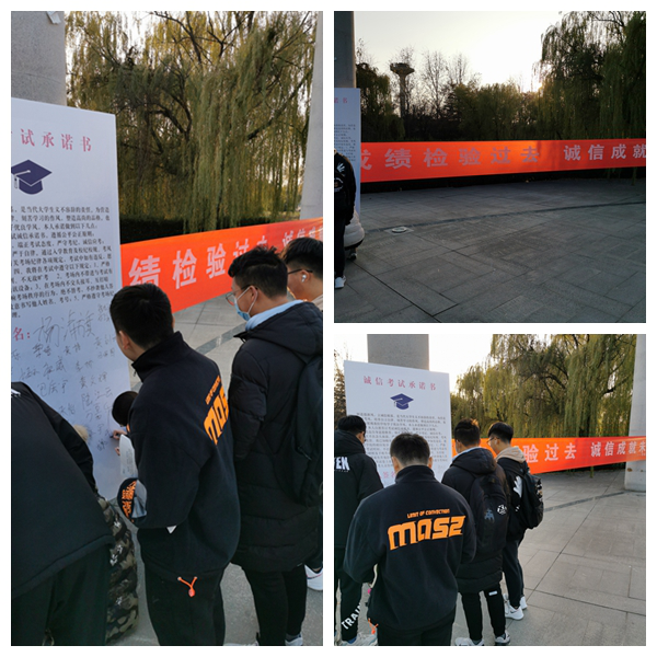 签署诚信考试承诺书,增强诚信意识。为进一步加强员工诚信意识,将诚信考试落到实处,确保将考试相关纪律要求传达给每一名同学,坚决抵制作弊行为,公司制作承诺书,组织全院同学共同签署,要求同学们谨记承诺内容,克服侥幸心理,自觉抵制作弊行为,力求达到教育广老员工诚信考试的目的,激发员工学习动力。