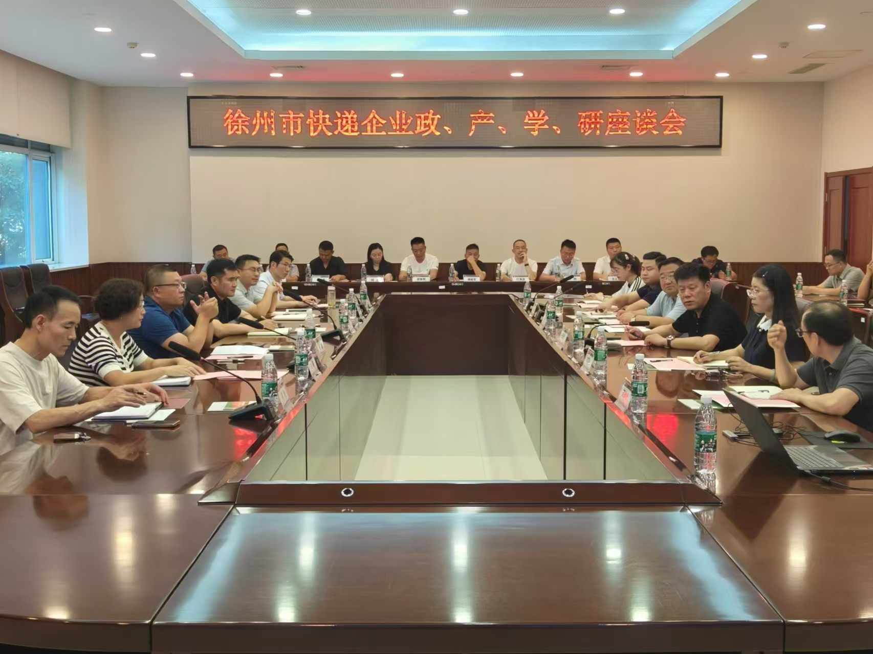 8月30日下午,在公司行政楼B101会议室,bevictor伟德联合徐州市邮政管理局、徐州市商务局,开展徐州市快递企业政、产、学、研座谈会,公司王逢博副董事长、马慧敏经理、物流工程教研室骨干教师、徐州市邮政管理局侯波副局长、徐州市商务局史长青副局长参会,徐州市11家快递公司负责人、中国邮储银行徐州市分行负责人、徐州日报社记者等参与座谈、交流。