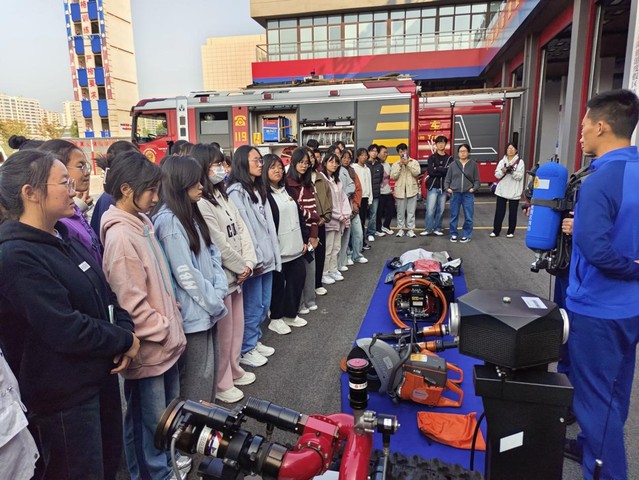 活动中,员工沉浸式体验消防生活,零距离感受“火焰蓝”的魅力。消防战士带领同学们依次参观了消防队的工作区、训练区、生活区、学习区。介绍了灭火器、救生照明灯、切割机,液压顶杆、消防机器人等消防专用器械的功能、使用方法,并向同学们展示了高楼攀登速降、四米高空救援的过程。体验的同学纷纷表示,今天厚重的消防救援服被穿在身上、高压水枪的压力打到身上,才真切感受到消防员的伟大。在活动过程中,应急管理专业同学老师还与消防员们沟通交流,了解应急专业员工的就业前景,以及技术防控在应急管理工作上的应用等。