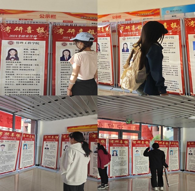活动中,工作人员将2024届学子考研荣誉榜展示在10号宿舍楼大厅,荣誉展板上面罗列着今年成功考研学子的风采和成绩,同学们进出宿舍楼时,都会忍不住驻足观看,从这些优秀榜样身上汲取力量。大家在感叹学长学姐们辉煌成绩的同时,也在心中默默立下自己的考研目标。这种荣誉感和紧迫感在宿舍楼中蔓延开来,形成了浓厚的学习氛围。