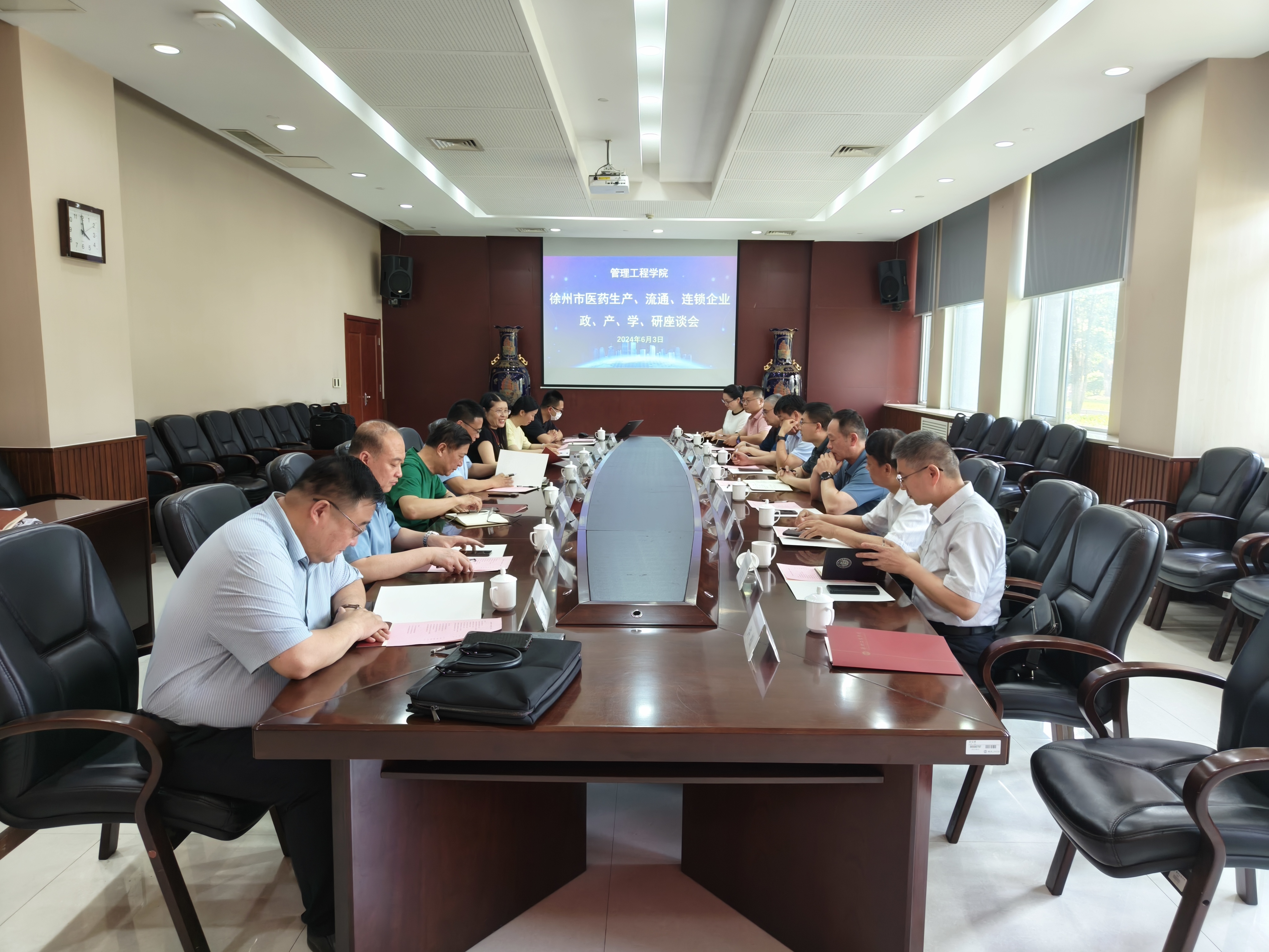 6月3日,在公司行政楼A101会议室,bevictor伟德联合徐州市商务局,开展徐州市医药生产、流通、连锁企业政、产、学、研座谈会;公司曹杰副董事长、马慧敏经理、物流工程教研室骨干教师、徐州市商务局副局长史长青、上药控股徐州医药物流有限公司总经理晁亮、国药控股徐州医药公司总经理苏庆雨、万邦集团徐州公司副总裁卢平、徐州恩华医药集团企业发展总监单文志、徐州恩华医药集团连锁公司总经理王磊、 江苏广度医药有限公司董事长贾继胜等参会。