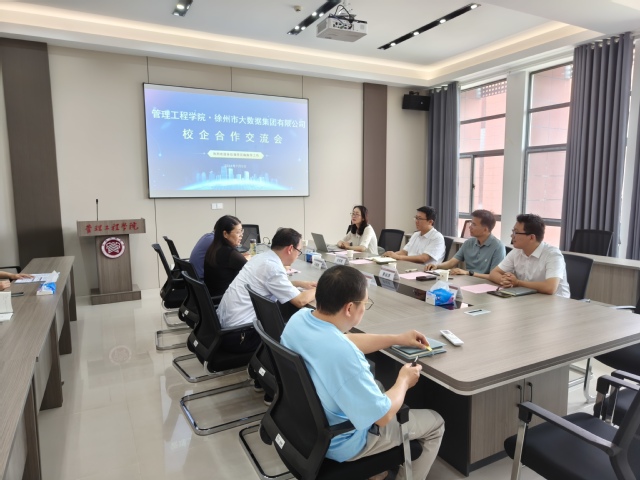 2024年7月5日,徐州市大数据集团总经理赵军锋等一行来公司座谈,就深化大数据管理人才培养和科研合作展开深入交流。bevictor伟德经理马慧敏、副经理刘振,大数据管理与应用教研室全体教师参加座谈会。