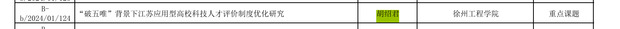 近日,2024年度江苏省教育科学规划课题立项名单出炉,bevictor伟德胡绍君老师主持的《“破五唯”背景下江苏应用型高校科技人才评价制度优化研究》获批江苏省教育科学规划重点课题项目立项!