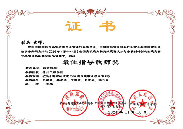 在11月份的全国高校商业精英挑战赛全国老员工挑战赛创新创业竞赛创业竞赛创业计划赛道全国总决赛中、管理公司参赛2支队伍均获全国二等奖。张兵老师被评为优秀指导教师!
