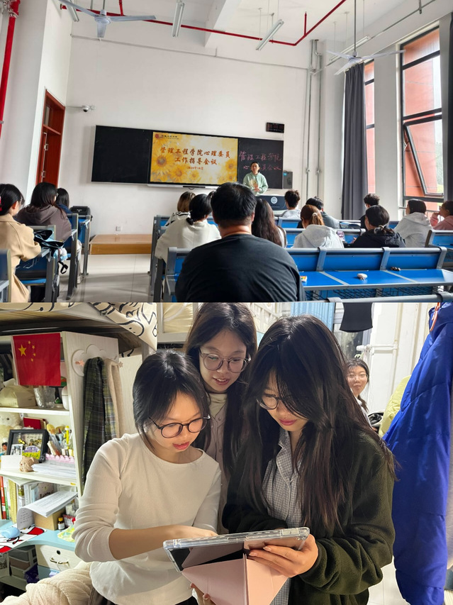 在会议结束后,各班心理委员将自己学到的知识投入到实践中去,走访各个寝室,将会议中学习到的调节考试焦虑,人际交往困惑的方法分享给同学们,帮助他们在解决学习中,生活上的困难。