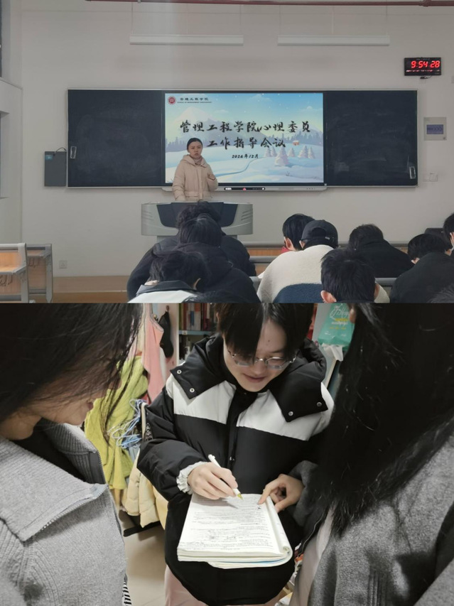 在本次会议中,田老师首先询问各班心委同学的心理状态,并指导心理委员和班长一起走进宿舍,关注同学们的心理状态,为同学们即将面临的考试加油打气。为同学们提供考前复习计划的建议,帮助同学们合理安排生活,合理应对本学期的考试。随后田老师向大家介绍本次“爱我时光机”12.5心灵探秘之旅征文活动,积极动员大家参加,用文字表达对自己的爱,传递积极向上的生活态度。