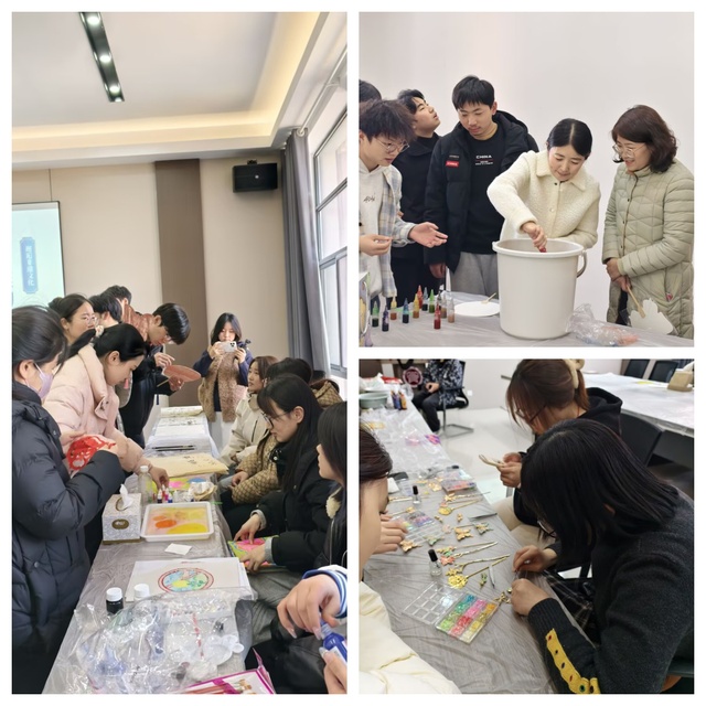 扎染以及竹编扇子体验区,同样吸引了众多目光。女老师们凭借丰富想象力与灵巧双手,赋予贝壳、竹条等质朴材料全新生命力,一件件精美绝伦、独具匠心的手工艺品接连诞生,生动诠释了非遗技艺的博大精深,也淋漓尽致地展现出女老师们的聪慧与巧手。